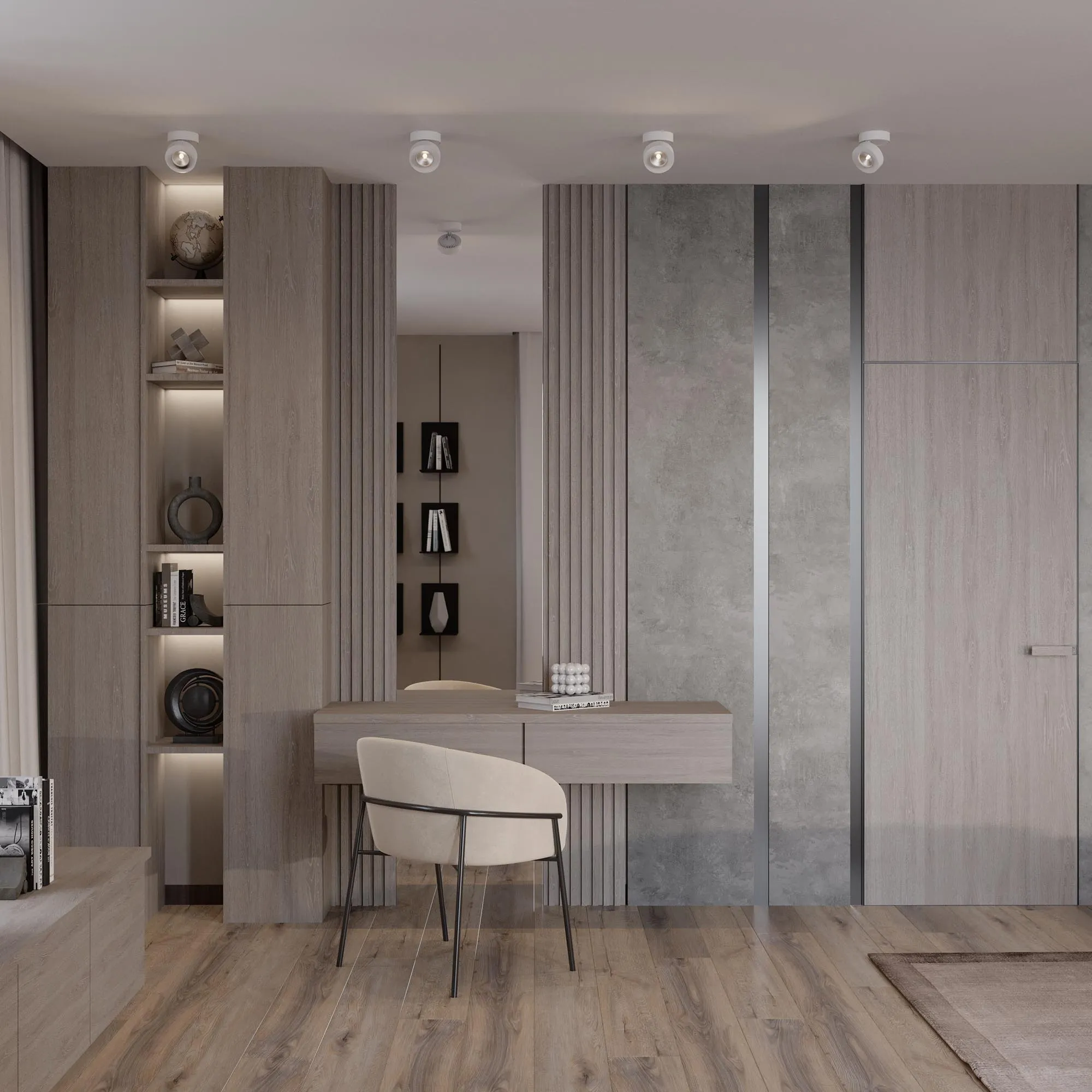 Светильник откидной для треков/шин 4 провода, 12Вт. Цвет свечения ДНЕВНОЙ 4000K, световой поток 770лм, CRI>90, угол свечения 24°, угол поворота 355°, угол наклона 90°. Корпус круглый, металл, цвет черный, IP40. Размер DxH Ø100x111мм. Питание AC 220-240V, 12Вт, драйвер встроенный (DC 300mA, 28-42V).