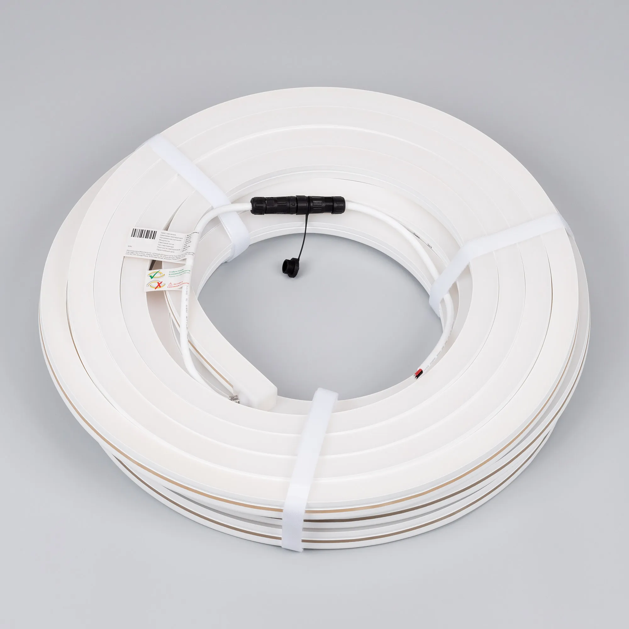 Гибкая герметичная лента (неон серии MOONLIGHT), сечение 20×20 мм. Светодиоды CSP 280 шт/м. Цвет свечения ТЕПЛЫЙ (3000К), индекс цветопередачи CRI>90, световой поток 480 лм/м, угол излучения 114°. Мощность 10 Вт/м, питание 24 В. Класс пылевлагозащиты IP67. Размеры 15000×20×20 мм. Мин. отрезок 50 мм. Горизонтальный изгиб SIDE, минимальный радиус изгиба 180 мм. Катушка 15 м. Цена за 1 м. Гарантия 5 лет.