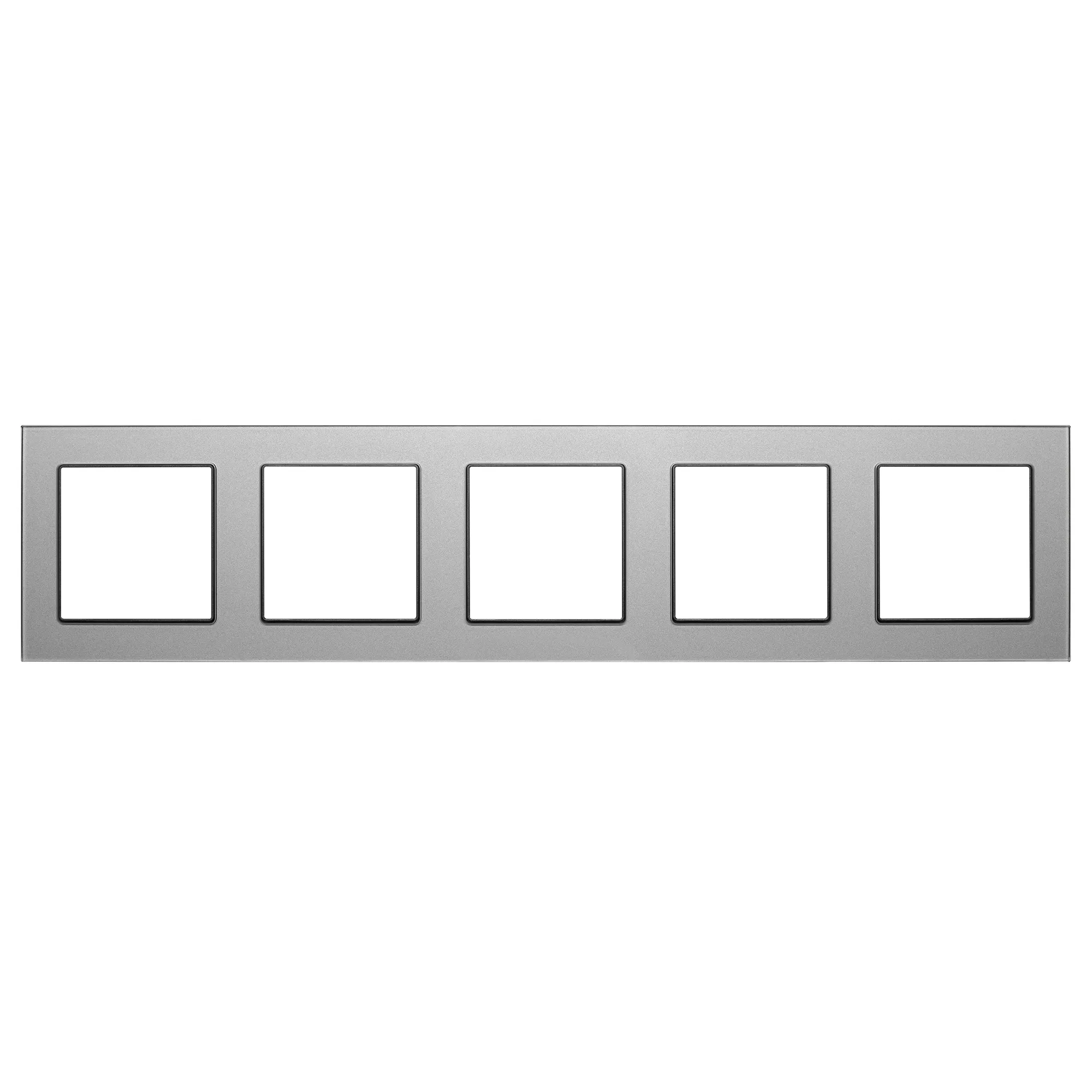 Рамка стеклянная на 5 постов, под встраиваемый механизм (квадрат). Цвет - серый. Ориентации монтажа - горизонтальная.