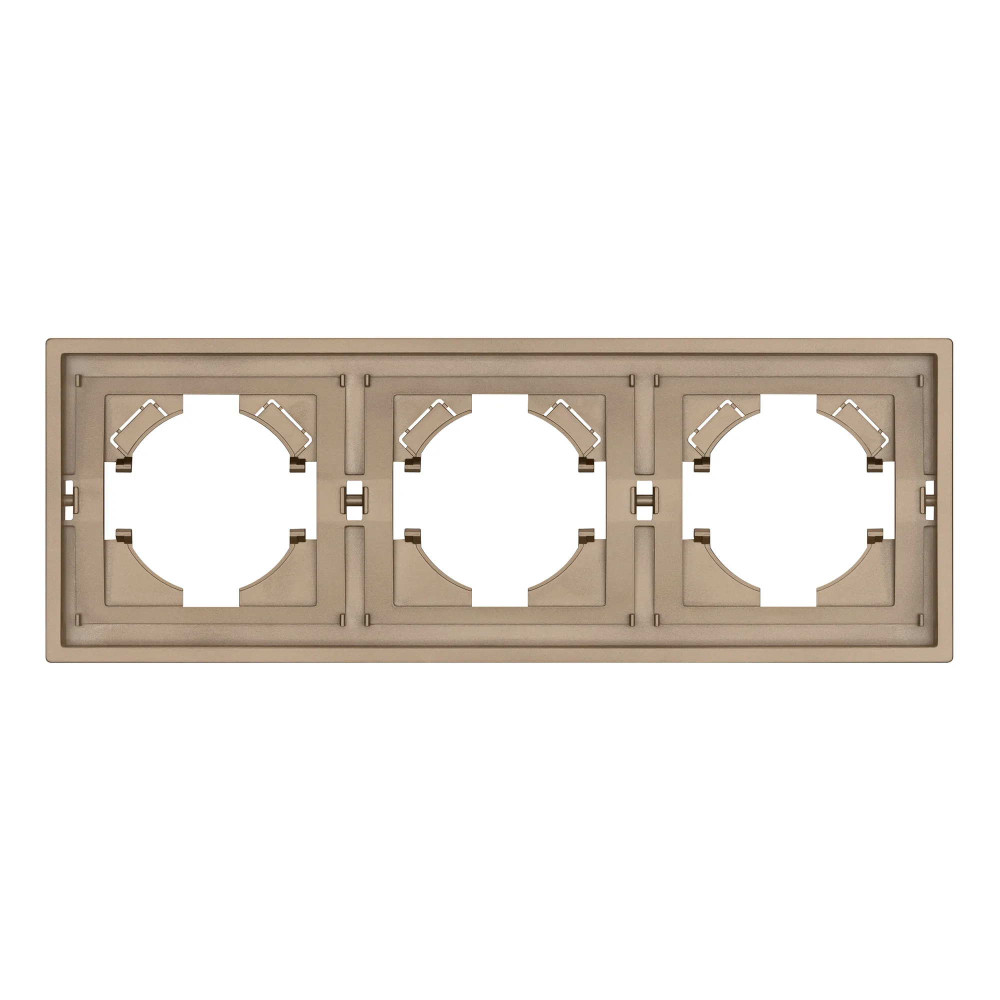 Рамка пластиковая на 3 поста, под встраиваемый механизм. Цвет - песочный. Уровень герметичности IP20. Ориентация монтажа горизонтальная. Габаритные размеры: длина 221 мм, ширина 80 мм, высота 9 мм. Гарантийный срок 12 мес.