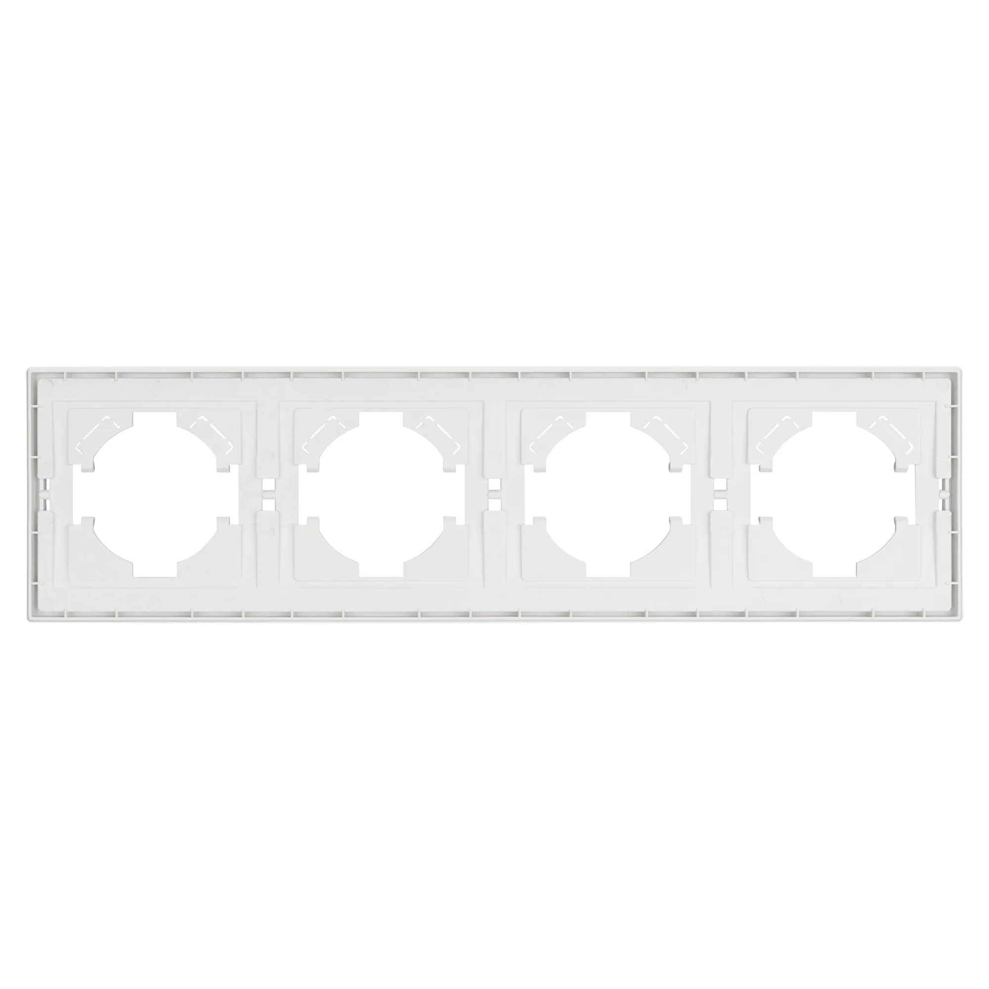 Рамка пластиковая на 4 поста, под встраиваемый механизм. Цвет - матовый белый, с Soft-Touch покрытием. Уровень герметичности IP20. Ориентация монтажа горизонтальная.