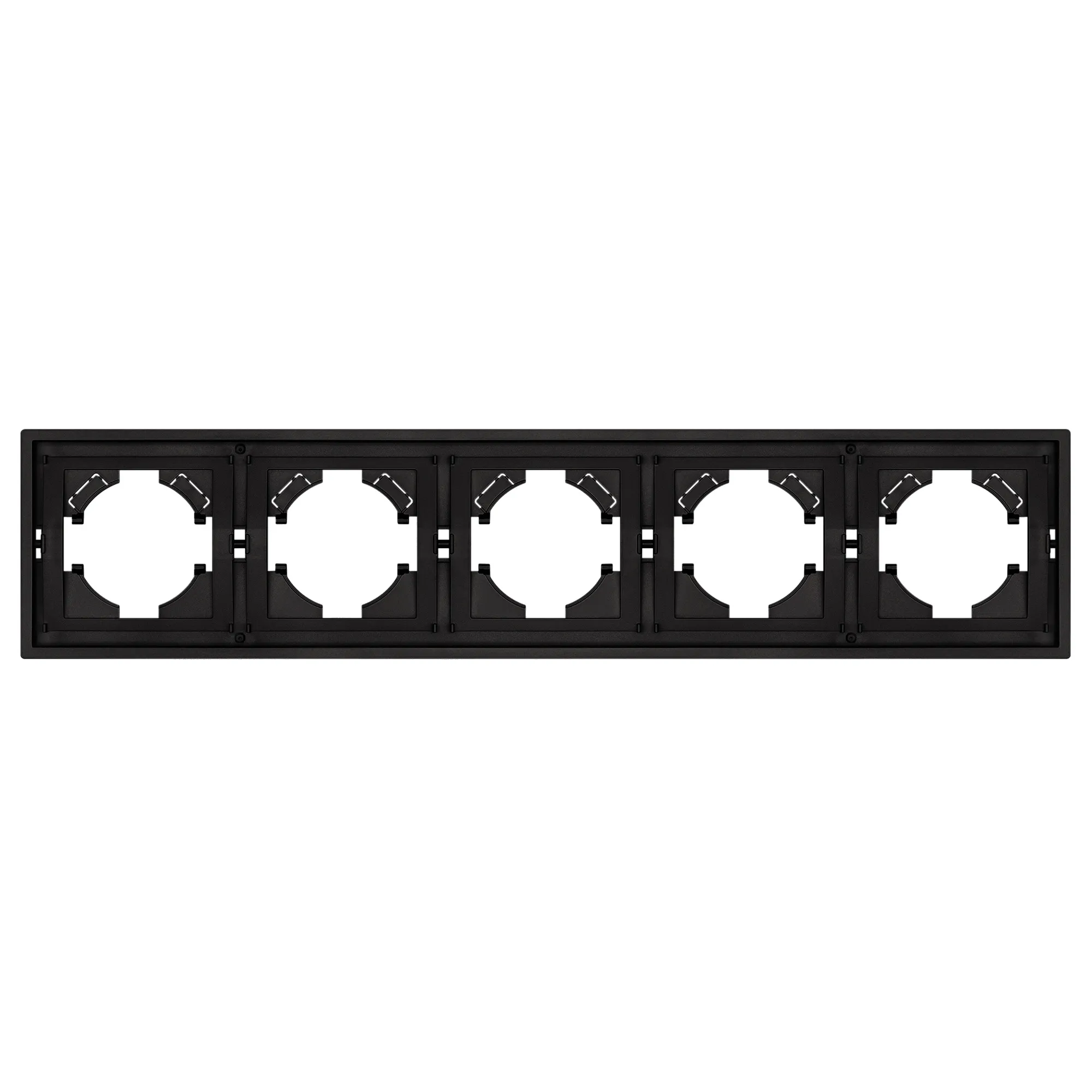 Рамка пластиковая на 5 постов, под встраиваемый механизм. Цвет - матовый черный, с Soft-Touch покрытием. Уровень герметичности IP20. Ориентация монтажа горизонтальная.